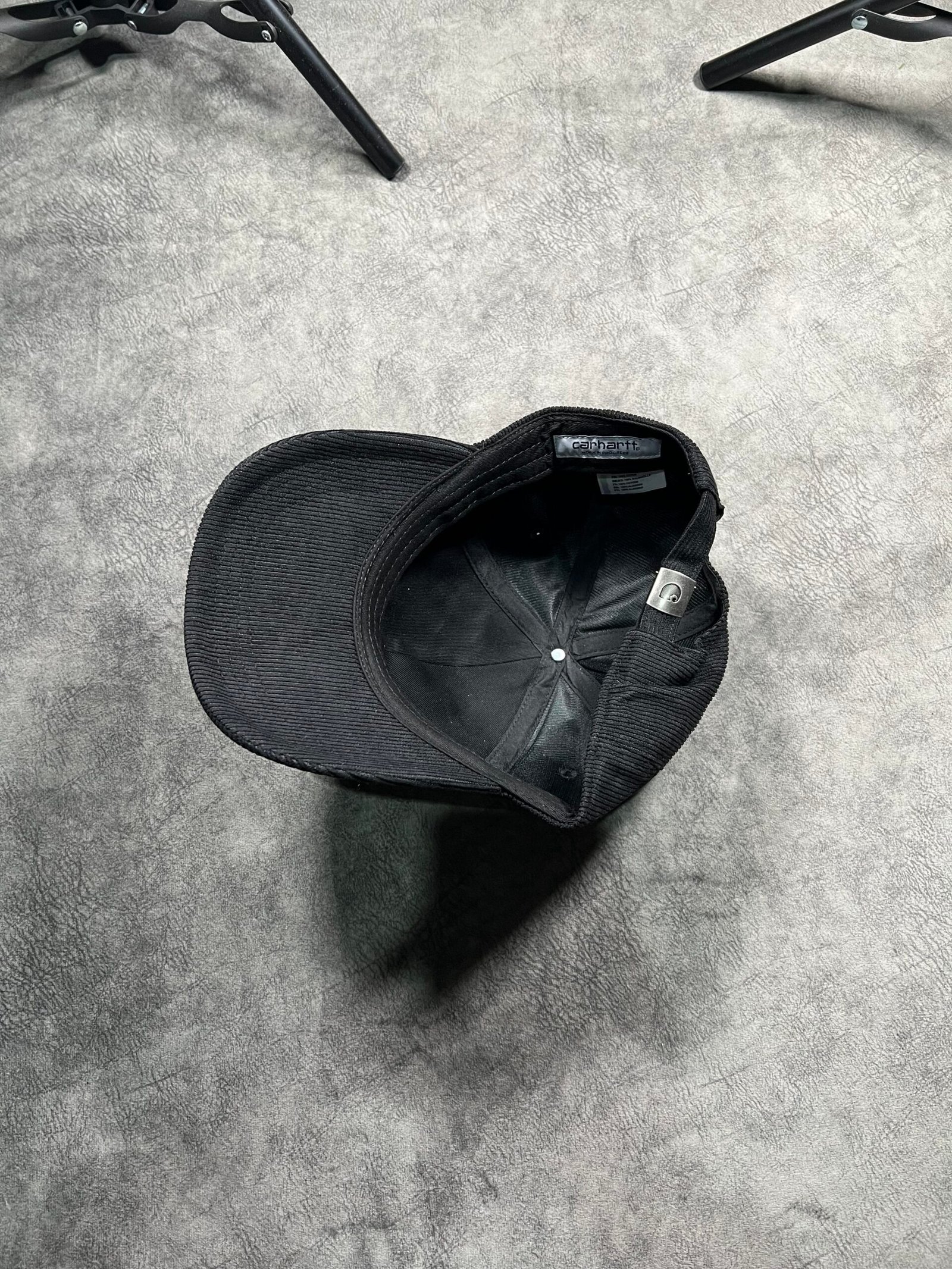 Gorra clásica de seis paneles confeccionada en pana de algodón resistente. Cuenta con visera curva firme, ojales bordados para ventilación y una correa ajustable con hebilla metálica para un ajuste cómodo.